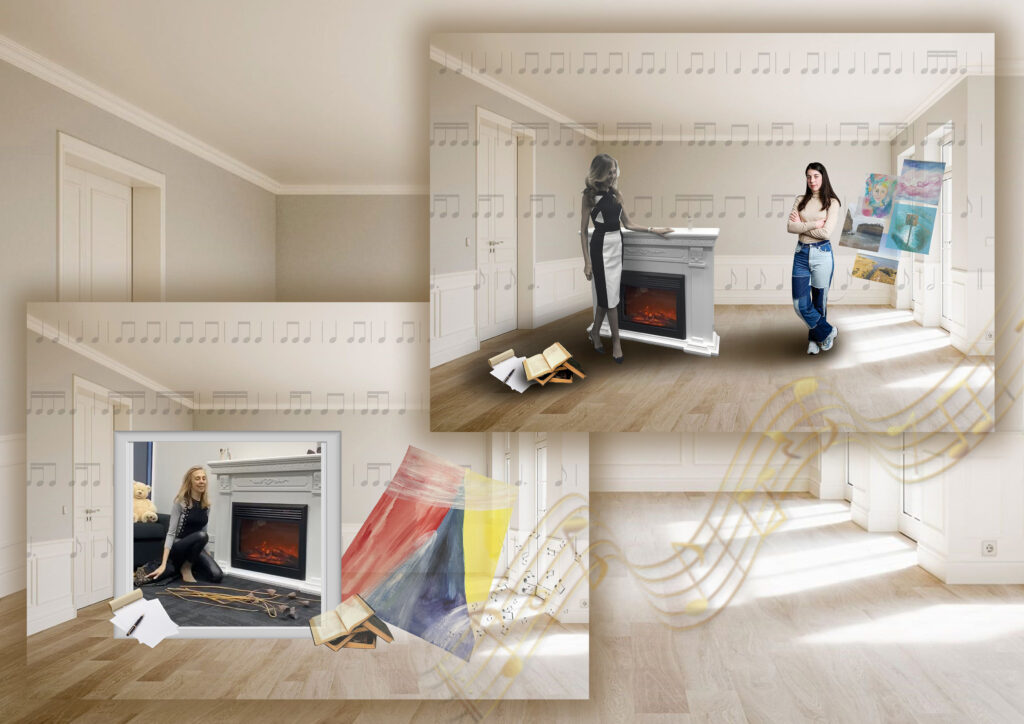When we started working with Ms. M, she was unsure about what she would like to do in the therapy. She had a lot of stress and anxiety in her life (including due to external events beyond her control). We worked predominantly with paintings and drawings. Despite very relevant stressful events, the themes that gradually emerged in Ms.M’s multimodal creations had to do with gender and sexuality. She was surprised and somewhat distressed at that, as these things were not on top of her mind. Different bits and pieces kept emerging spontaneously for a while. In parallel with this process, we were discussing these materials from a more rational point of view, clarifying their meaning and values in the life of Ms. M. These discussions provided a gentle framework in which emergent multimodal realisations could find their place and become integrated around a picture that Ms. M has about herself.
