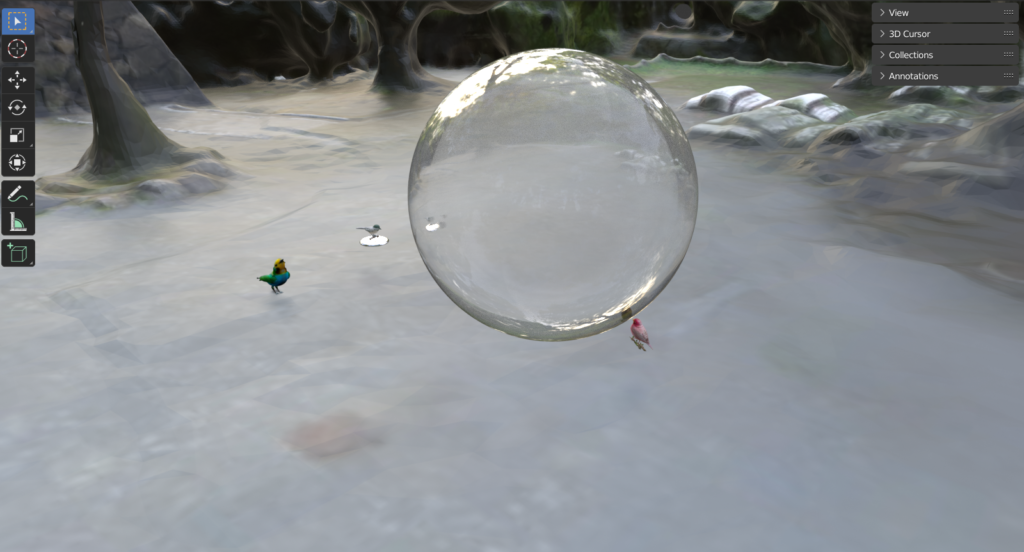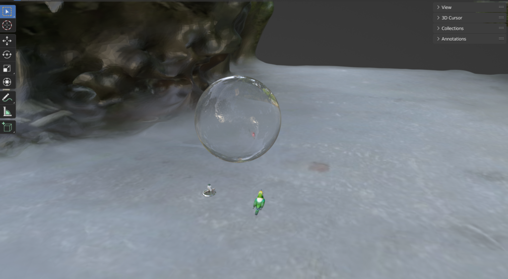 At one of our sessions, Mr. George was co-inquiring with Mr. P (who is roughly two times older), and I was companioning. Mr. George and Mr. P were creating a shared space in a 3D-modelling program. While the process was initiated by Mr. George, he was somewhat “shy” in taking the space, only placing a smallish house and a yacht for himself; at the same time, he was helping Mr. P quite a lot. In contrast, Mr. P placed a large castle and a big ship. Mr. P enjoyed the majesty and brightness of his objects and praised Mr. George for his help. From the outside, it looked as if Mr. P was the owner of the space.